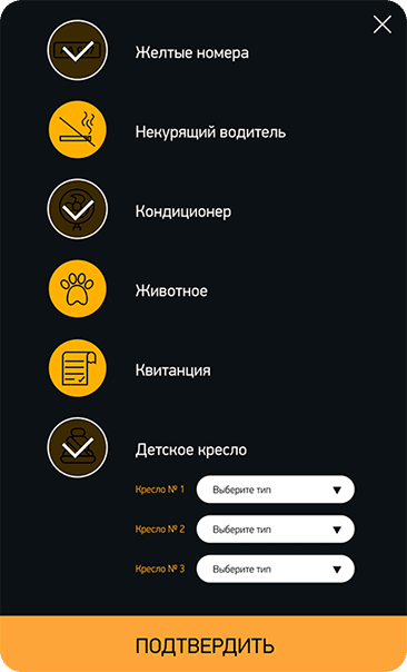 Выбор тарифа, маршрута и дополнительных опций