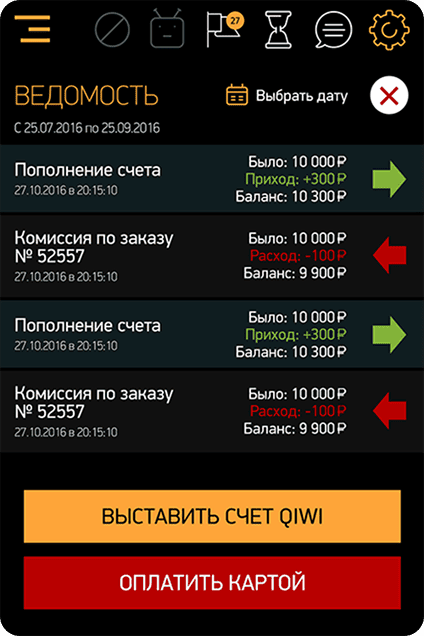 Управление балансами и вывод средств на карту прямо из приложения;
