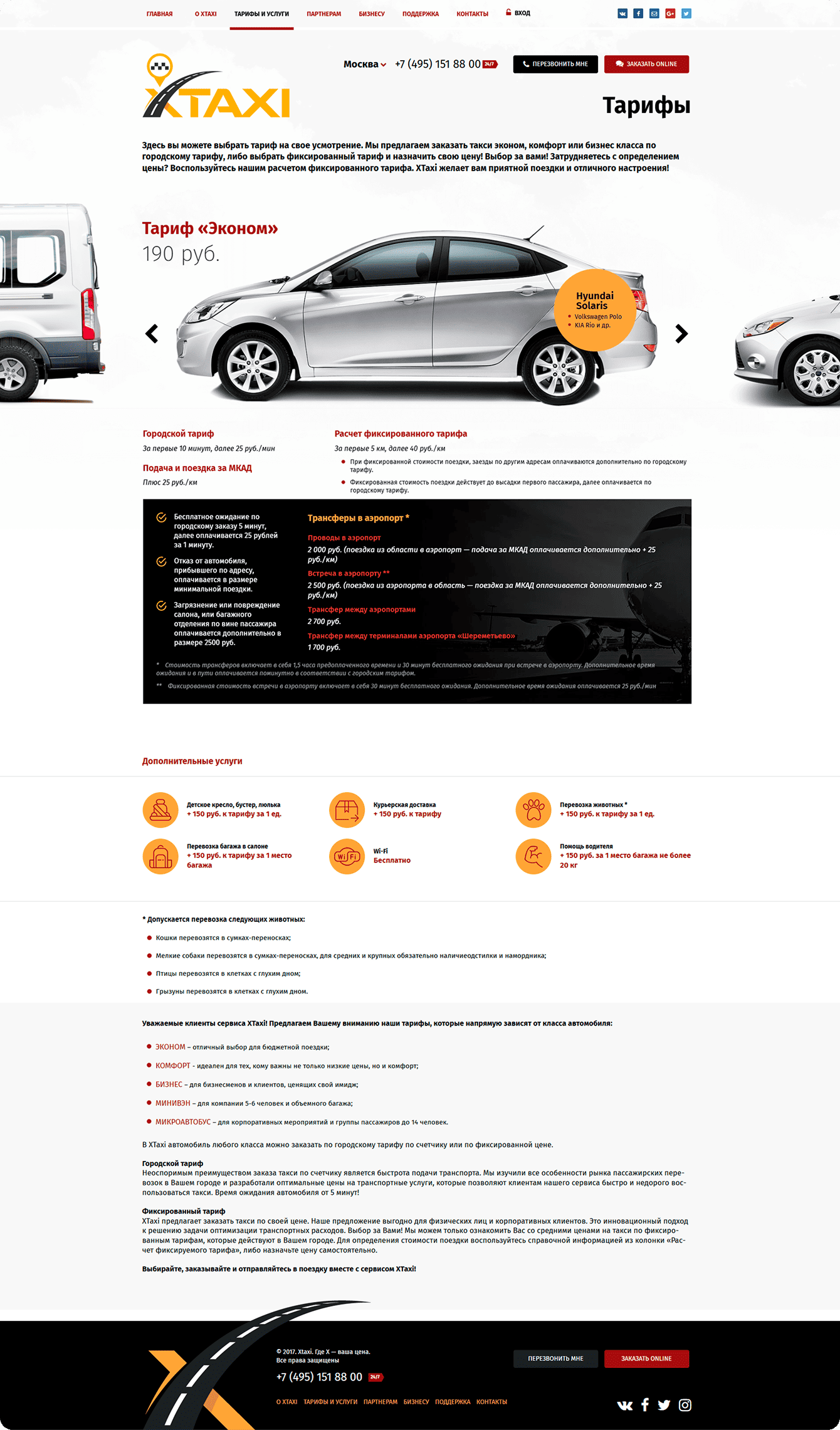 Страница “тарифы и услуги”